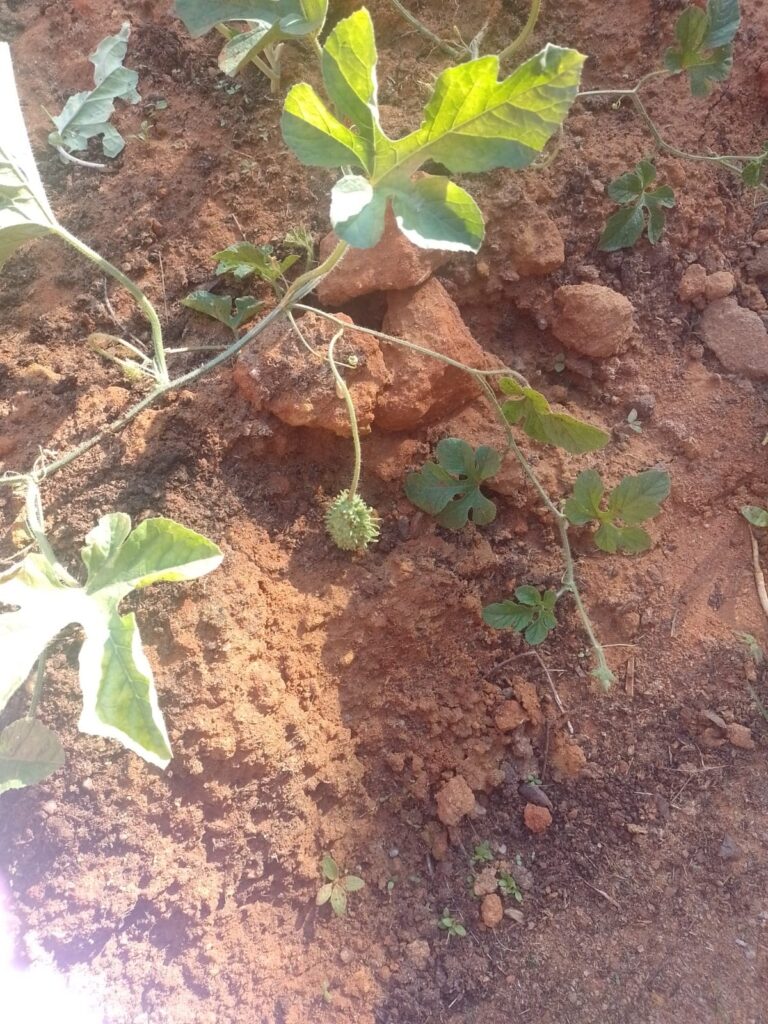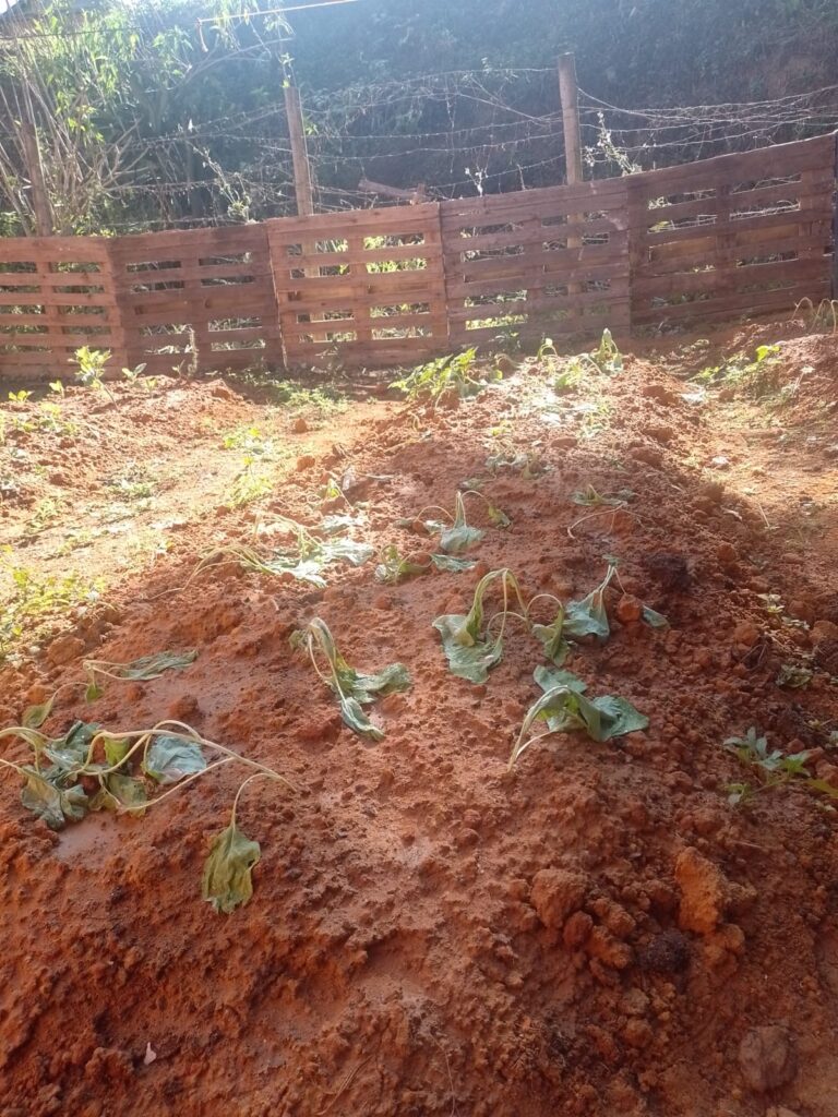 Foto 2: Primeiro broto de maxixe no pé na horta da Associação Pestalozzi. Crédito/ Imagem: Associação Pestalozzi de Atílio Vivacqua.
